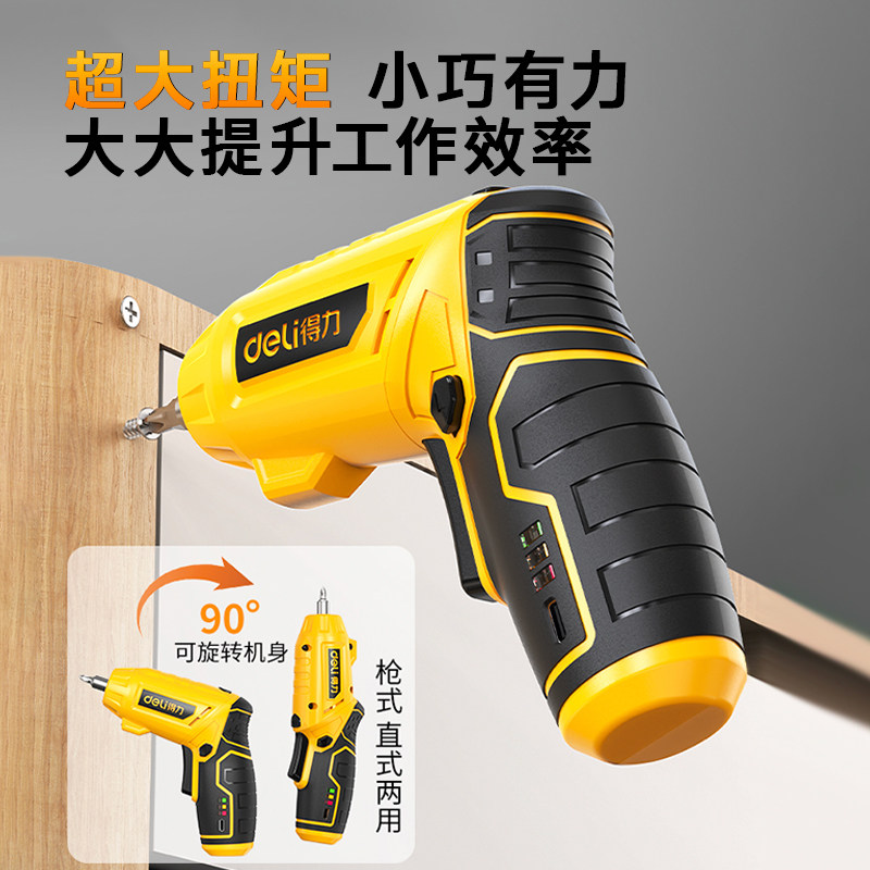 得力电动螺丝刀锂电套装是一款集多功能于一体的家用电动工具,采用高性能锂电池,续航持久,支持快速充电,摆脱电线束缚,使用更便捷。套装配备多种常用批头,适用于家具组装、电器维修、设备安装等多种场景。小巧轻便的设计,握感舒适,操作省力,即使是女性或老人也能轻松上手。配备LED照明灯,暗处作业更清晰。具备正反转功能,可轻松拧紧或拆卸螺丝,部分型号还集成手电钻功能,满足轻度钻孔需求。无论是家庭日常维护还是DIY爱好者,这款充电式多功能螺丝批都是实用又高效的得力助手,安全耐用,性价比极高。
