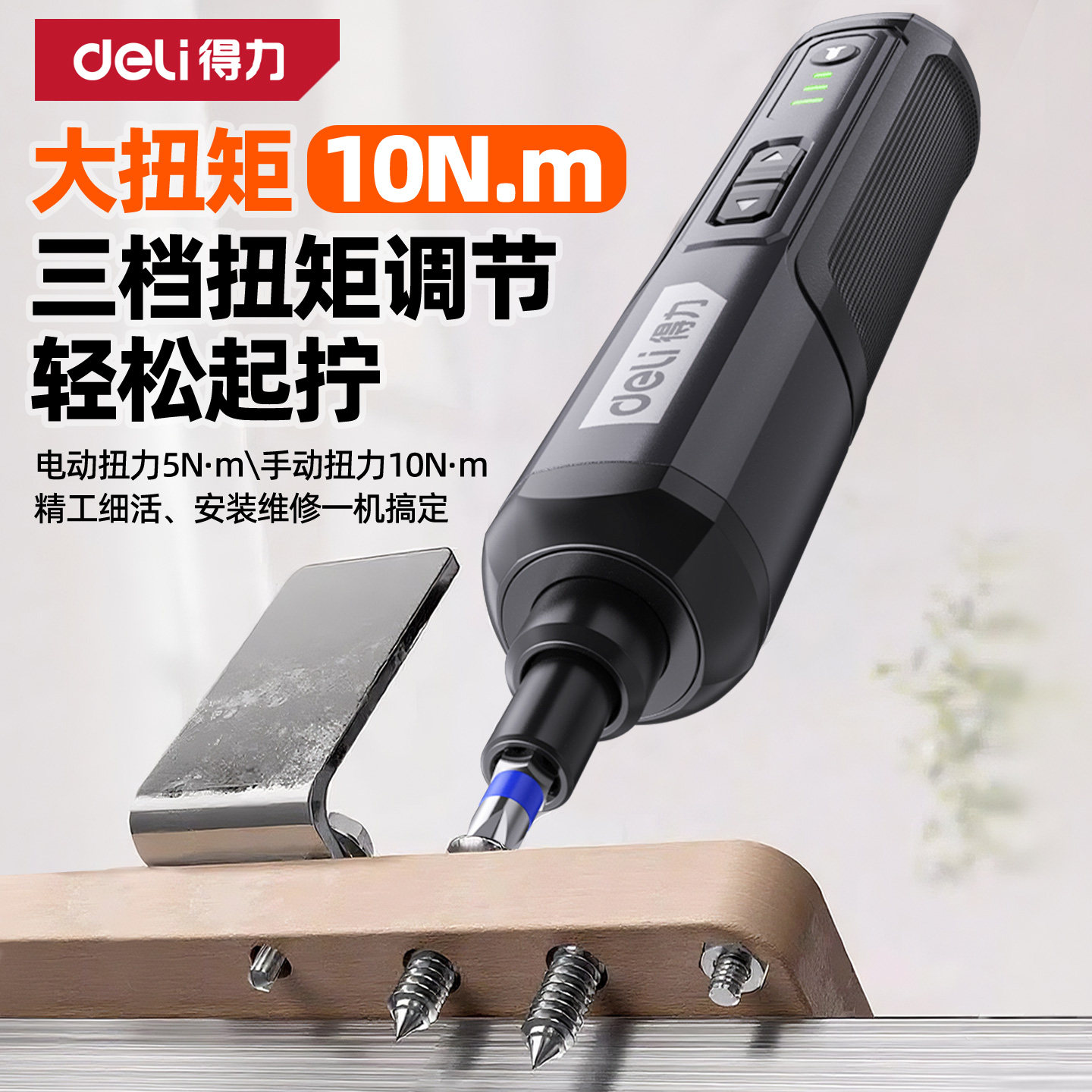 天猫得力电动螺丝刀套装充电式家用起子机锂电小型多功能电批电钻工具