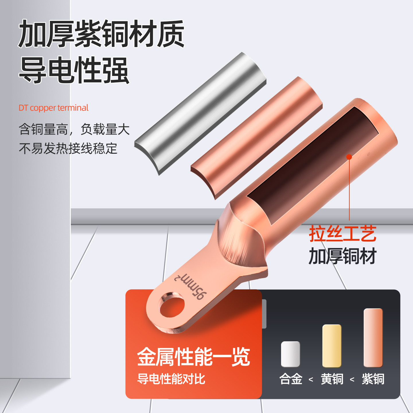 淘宝DT国标铜铝鼻子电线快速接线端子对接头窄头线鼻子紫铜断路器小头