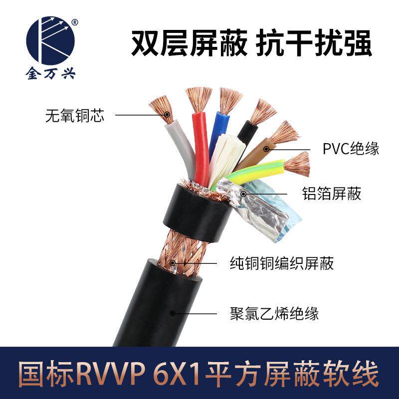 淘宝日本进口国标纯铜6*1.0平方双屏蔽线6芯音频通讯信号软电线电缆RV