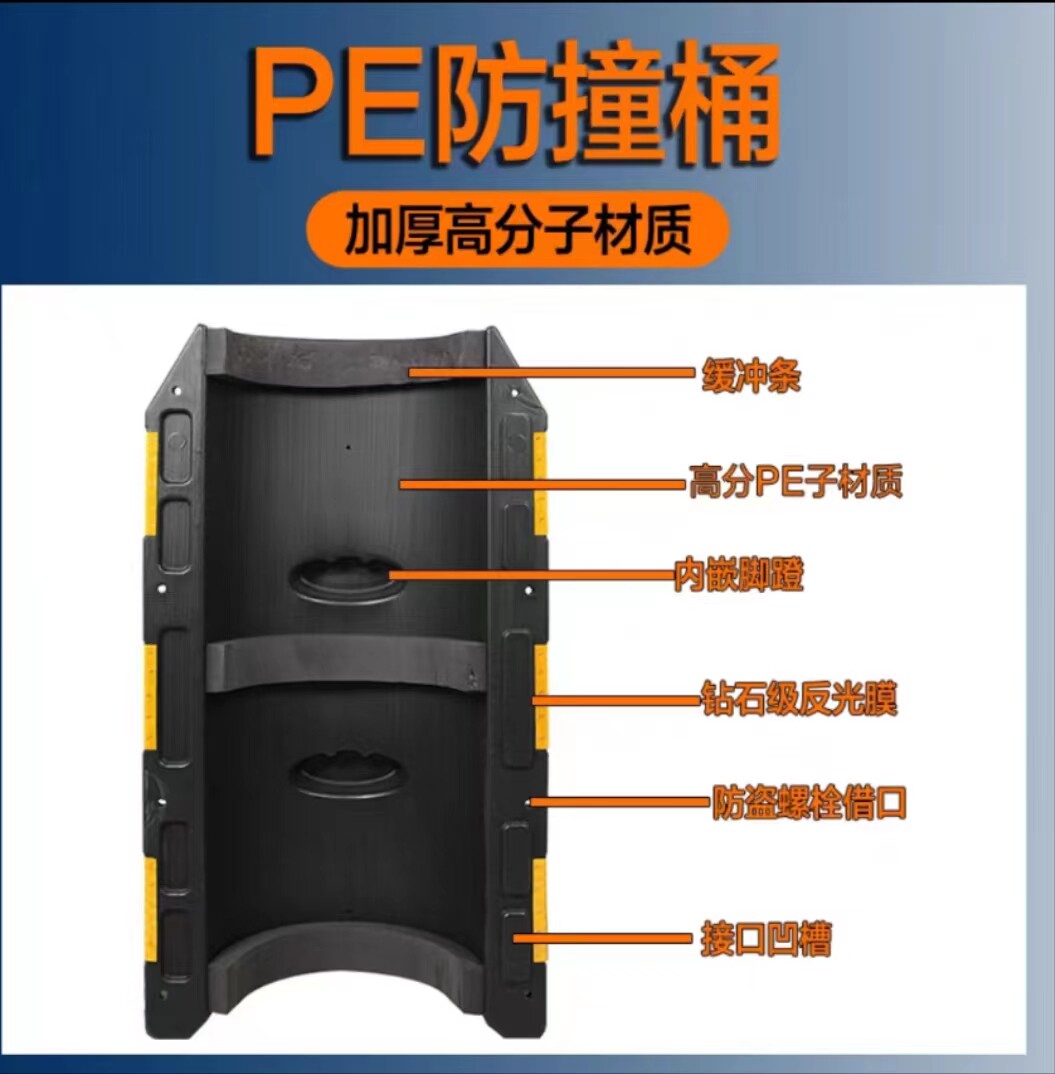 电线杆防撞桶是一种专为保护电线杆及周边设施安全而设计的交通安全防护装置,广泛应用于城市道路、交叉口、弯道等车辆易碰撞区域。依据国家相关标准(国标)制造,采用高强度聚乙烯(HDPE)材料,具备优异的抗冲击性、耐候性和抗紫外线能力。其圆柱形结构能有效分散撞击力,降低车辆和电线杆的损伤风险。表面配有高反光警示条,夜间或低光照条件下显著提升警示效果。安装简便,可填充水或砂土以增加稳定性,兼具环保与实用性。电线杆防护桶不仅提升道路安全等级,也有效延长电力设施使用寿命,是城市交通安全管理的重要配套设施。