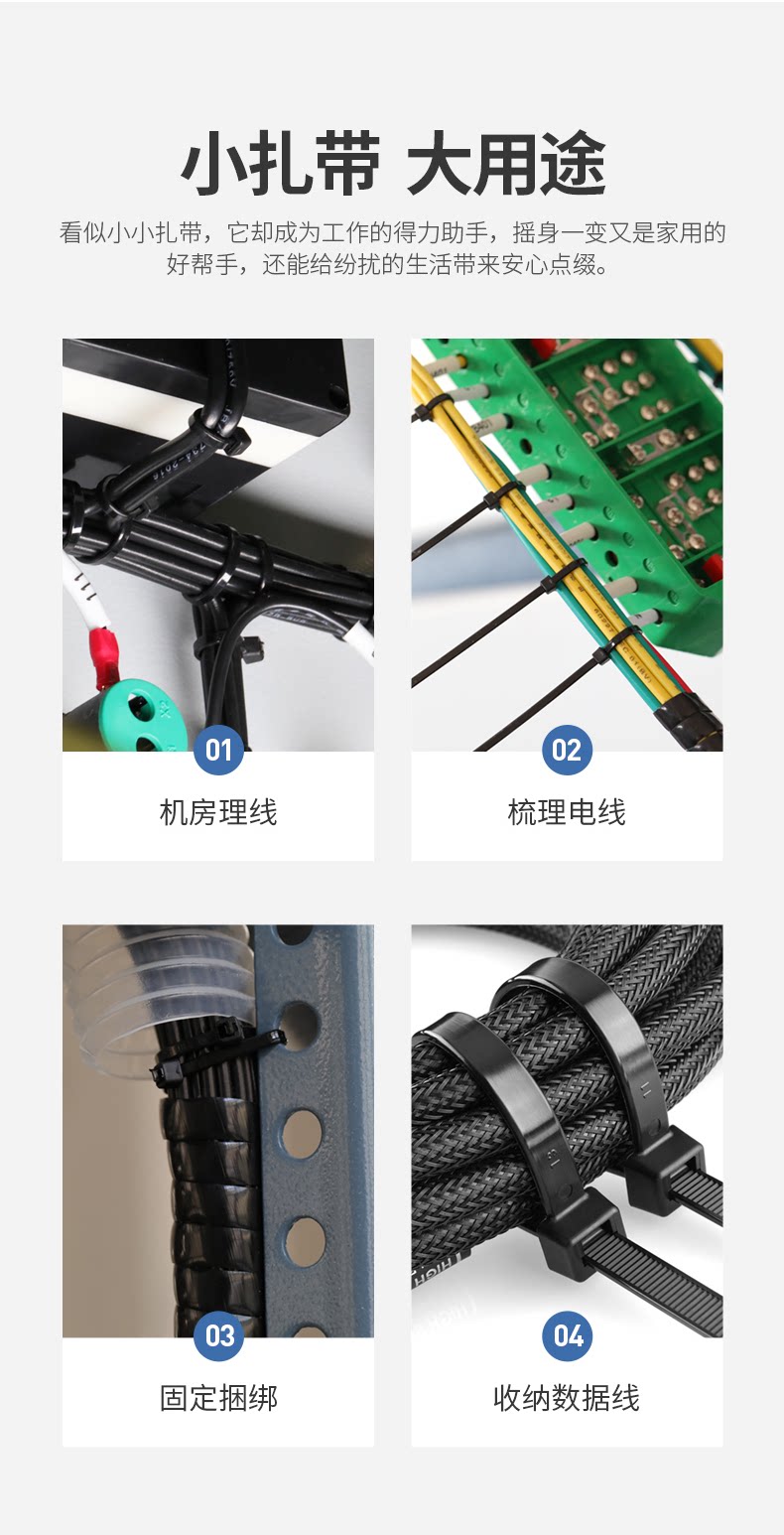 天猫国标尼龙扎带塑料固定轧带自锁式扎线带电线捆扎线束带白黑色包邮