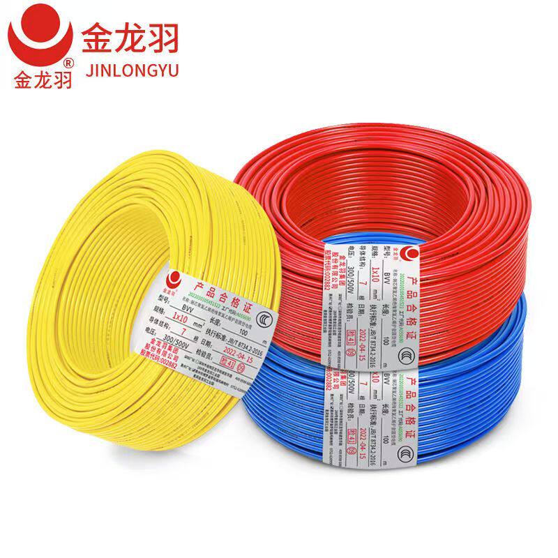 淘宝金龙羽电线电缆BVV10/16/25/35平方国标铜芯双皮铜芯电线家装散米