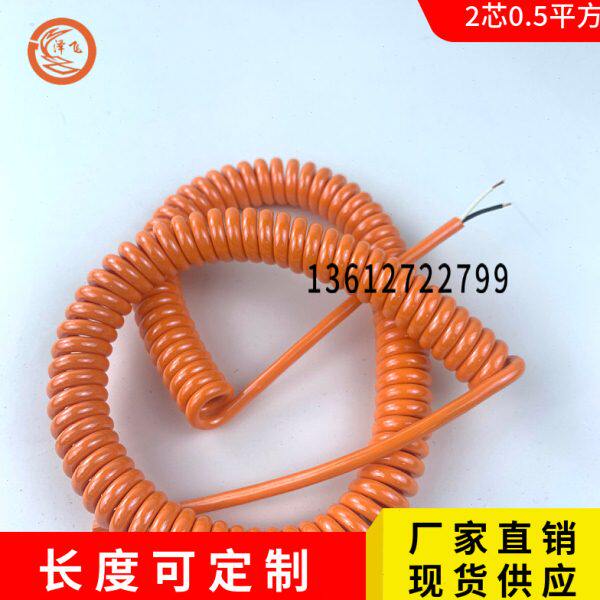 弹簧线淋水2芯平方国标纯铜PUR螺旋电线线缆弹性伸缩线