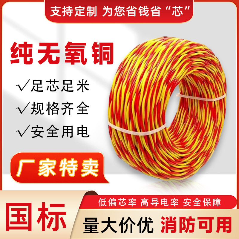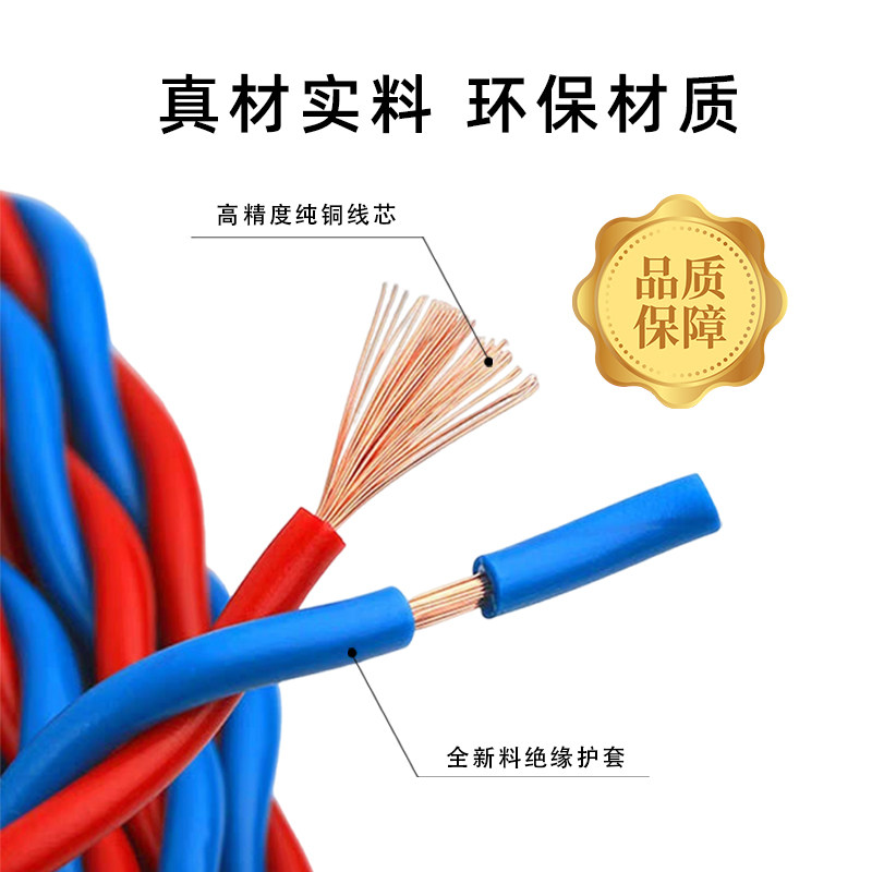淘宝国标纯铜花线家用电线RVS1.5/2.5平方电动车充电线插排线正品清仓