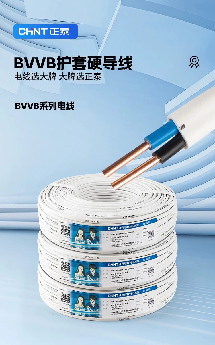 正泰护套线电源线涵盖BVVB硬线与RVV软线两大系列,均采用国标铜芯,导电性能优异、安全可靠。BVVB为2芯或3芯扁形护套硬线,结构稳定,适用于固定布线,如家庭照明、插座回路等;RVV为多股软铜线,柔韧性好,便于穿管或移动设备连接。规格齐全,提供1.5、2.5、4、6平方等多种截面积,满足不同负载需求。产品符合国家标准,具备阻燃、耐磨、抗老化等特性,外层护套有效保护内部导体,延长使用寿命。正泰品牌保障品质,广泛应用于住宅、商业及工业电气安装,是安全用电的可靠选择。