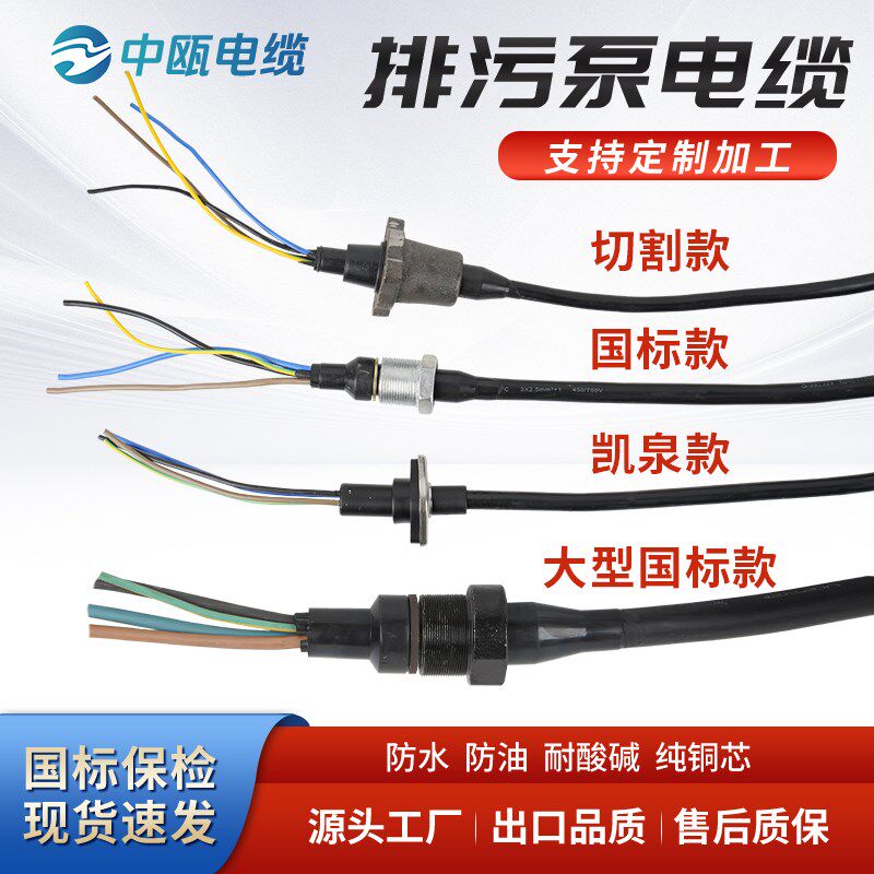 三相压板凯泉款污水泵专用电缆线,采用国标优质无氧铜导体,导电性能强、电阻低,确保动力传输稳定高效。电缆外层选用耐磨、耐腐蚀、抗老化的PVC绝缘材料,具备良好的防水和耐油污性能,适用于油浸式排污泵、切割泵及潜水泵等恶劣工况环境。压板结构设计牢固,接线安全便捷,有效防止松动与短路。产品严格遵循国家电气标准生产,绝缘与护套厚度达标,阻燃性能优异,广泛应用于市政排污、建筑排水、工业废水处理等领域,是凯泉系列污水泵可靠配套的优质电缆解决方案。