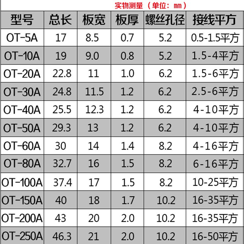 淘宝A级加厚国标OT紫铜开口鼻子电线接线端子铜接头线耳3 10 20 40 60