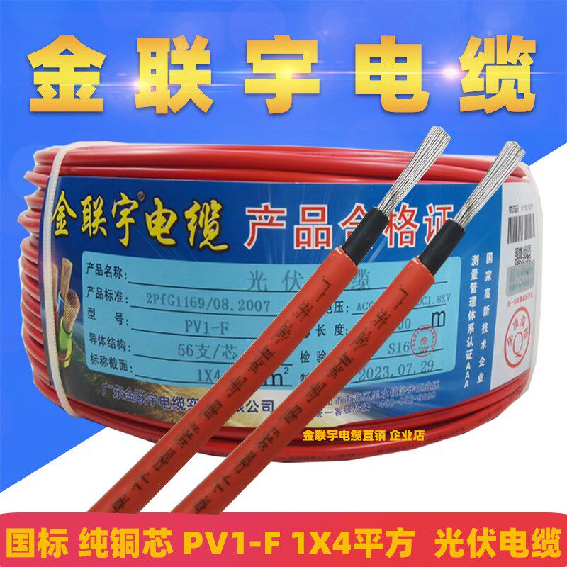 淘宝金联宇光伏电缆PV1-F 4平方光伏电线国标太阳能直流线铜芯线