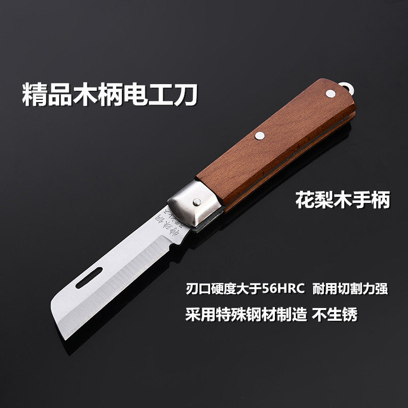 天猫电工刀 木柄折叠非绝缘直刃弯刃多功能特殊钢剥线刀电缆线刀子