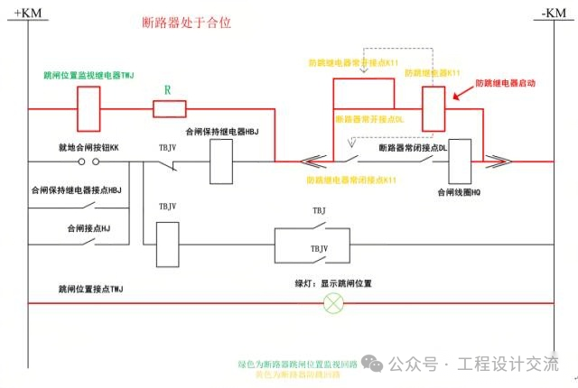 输入与输出回路电气隔离,恒电流发生器跨接于回路出口接点之间; 获得额定工作电压后,输出1.5mA稳定测量电流,流经断路器分、合闸回路,实现回路完整性监视; 适配优势:TWJ(监视继电器)与防跳回路物理分离,互不干预,仅需与合闸线圈参数匹配,从根源上避免配合矛盾。 五、回路设计核心原则(一)设计原则功能优先:TWJ回路需兼顾“位置指示”与“回路监视”双重功能,不得因规避矛盾牺牲核心监视能力; 隔离适配:不同厂家组件(操作箱TWJ与机构箱防跳)需进行参数校验,优先采用“串联辅助接点”的优化方案; 特殊适配:针对HD4等自带防跳功能的断路器,选用厂家配套专用监视元件,避免通用元件导致的适配失效。 (二)工程实操建议参数校验:电压型防跳继电器与TWJ的线圈电阻需匹配,确保防跳继电器返回电压满足要求,避免异常自保持; 回路测试:断路器分合操作时,需验证TWJ动作状态、指示灯显示一致性及防跳功能有效性,重点测试“合闸脉冲消失后防跳继电器是否正常返回”; 告警配置:保留TWJ与HWJ常闭接点串联的“控制回路断线”告警功能,确保回路故障时及时反馈运维人员。 TWJ与防跳回路的配合核心是“功能互补+矛盾规避”:既要通过TWJ实现断路器位置可视化与合闸回路完整性监视,又要借助防跳回路防止异常合闸冲击。工程设计中,优先采用“串联辅助接点”的优化方案,针对特殊设备选用专用适配元件,可有效解决参数不匹配问题,保障断路器控制回路的安全性与可靠性。 |