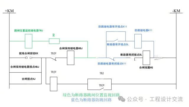 在电气二次回路中,断路器控制回路是保障电力系统可靠运行的核心环节,其中跳闸位置监视继电器(TWJ)与防跳回路的配合直接影响断路器操作安全性与回路完整性监视效果。本文系统梳理TWJ与防跳回路的核心功能、配合矛盾、优化方案及特殊设备适配策略。 一、核心组件功能定位(一)TWJ(跳闸位置监视继电器)TWJ是断路器位置监视与回路完整性校验的关键元件,核心功能包含两点: 位置指示:串联于合闸回路中,当断路器处于分闸位置且合闸回路完整时,TWJ励磁动作,操作箱绿灯点亮,直观反馈开关分闸状态; 回路监视:与合闸位置监视继电器(HWJ)的常闭接点串联,实现“控制回路断线”告警功能,及时发现合闸回路故障。 (二)防跳回路防跳回路的核心作用是防止断路器在持续合闸脉冲下发生多次跳合故障,通常通过防跳继电器(电压型为主)实现:当断路器处于合闸位置且存在持续合闸脉冲时,防跳继电器启动并通过自身常开接点自保持,切断合闸回路,避免开关反复动作。