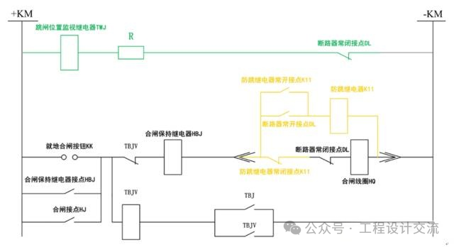 (二)故障演化过程断路器处于合闸位置,若存在持续合闸脉冲,防跳继电器启动并通过常开接点自保持; 合闸脉冲消失后,正电源经TWJ线圈与防跳继电器线圈形成通路。由于两者均为电压型继电器,若防跳继电器线圈内阻大于TWJ回路总电阻,其线圈分压会超过自身返回电压,导致防跳继电器持续励磁不返回; 连锁后果:合闸回路被持续切断,无法正常合闸;TWJ同样无法返回,操作箱跳位灯(绿灯)与合位灯(红灯)同时点亮,造成位置指示混乱;防跳继电器长时间励磁可能因过热烧毁。 三、优化解决方案演进(一)初步方案:TWJ与合闸回路分离为规避参数匹配矛盾,部分设计将TWJ回路从合闸控制回路中分离,通过与断路器常闭辅助接点串联,仅实现分闸位置监视功能。