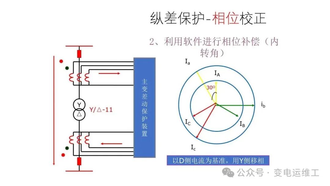 利用保护元件观察变压器二端电流和相位,判断内部是否发生故障。