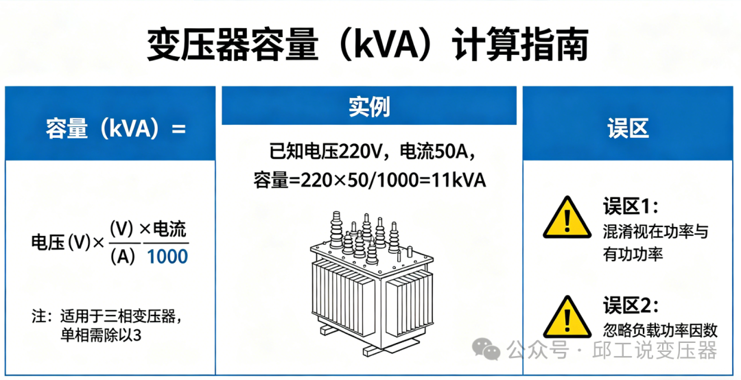 变压器容量(kVA)怎么算?公式+实例+常见误区,一看就懂