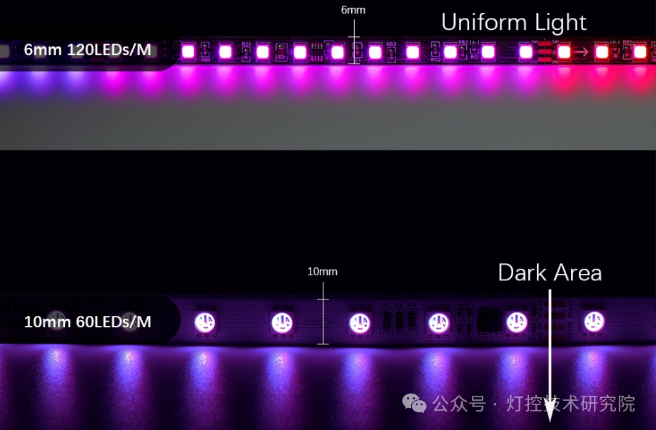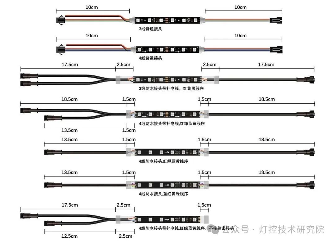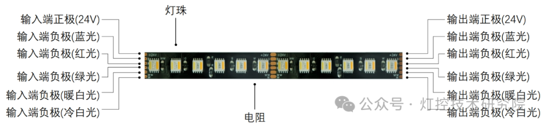 RGBWW/CCT: RGB + 双色温白光(如2700K+6500K),可以混合出从暖白到冷白的任意色温,同时保留RGB彩光。