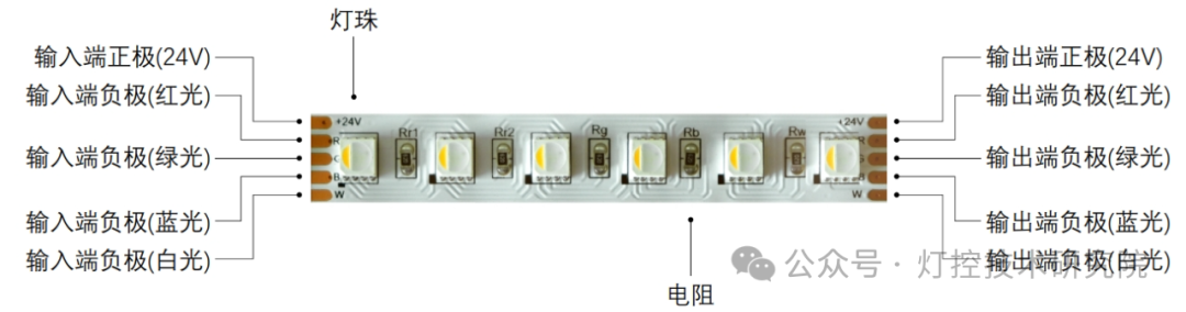 RGBW: RGB + 白色(通常有暖白/冷白/正白可选),显色性和白光质量更好。