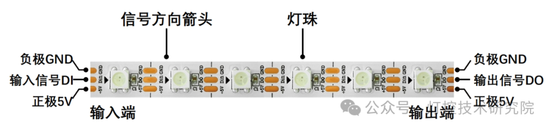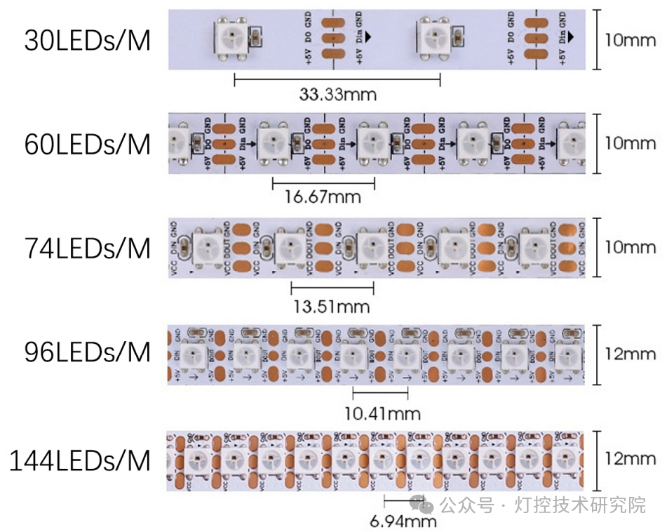 1.幻彩灯带 类型选择:RGB(三色混合)或RGBW(三色+白光)/内置芯片(控制ic集成在灯珠里面,一颗灯珠一个像素),外置芯片(控制ic与灯珠分开,通常是三颗灯珠一个像素或六颗灯珠一个像素) RGB内置芯片幻彩灯带: