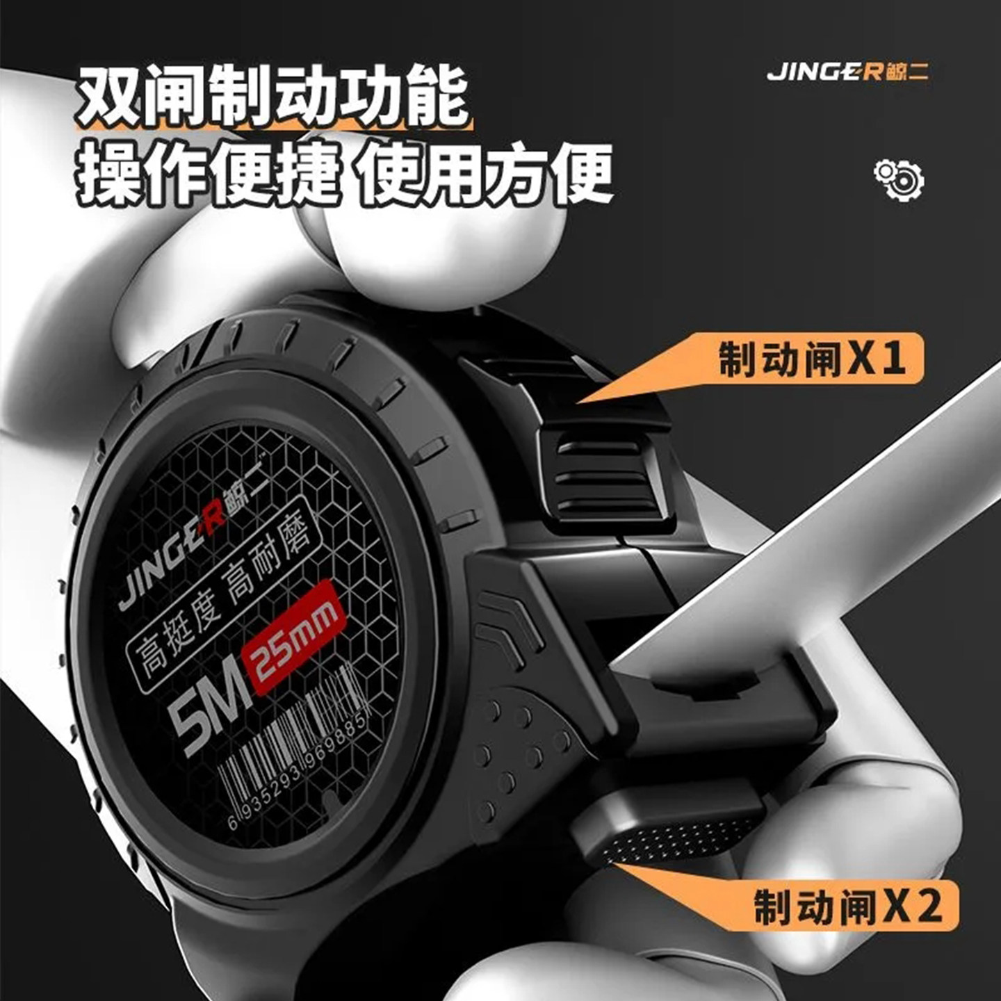 吉米耐磨测量卷尺钢尺量尺3米5米防割手正品盒尺拉尺圈尺加厚尺子