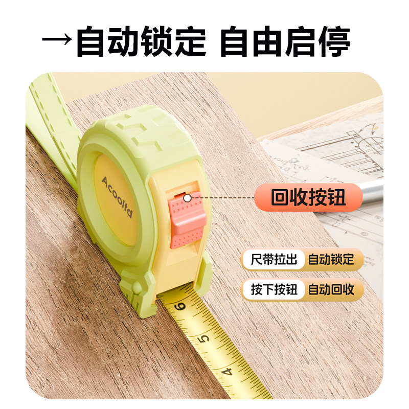 这款5米家用钢卷尺集安全、精准与耐用于一体,专为家庭装修与日常测量设计。采用高精度刻度,清晰耐磨,确保测量数据准确无误。尺带选用优质钢材,韧性强、不易变形,同时边缘经过特殊打磨处理,有效防割手,使用更安全。迷你轻巧设计,便于随身携带和收纳。外壳采用高强度ABS材质,抗摔耐冲击,经久耐用。自动回弹功能顺滑稳定,卡扣定位精准,提升操作效率。无论是木工、装修还是日常家用,这款卷尺都能满足您的测量需求,是家庭工具箱中的实用之选。