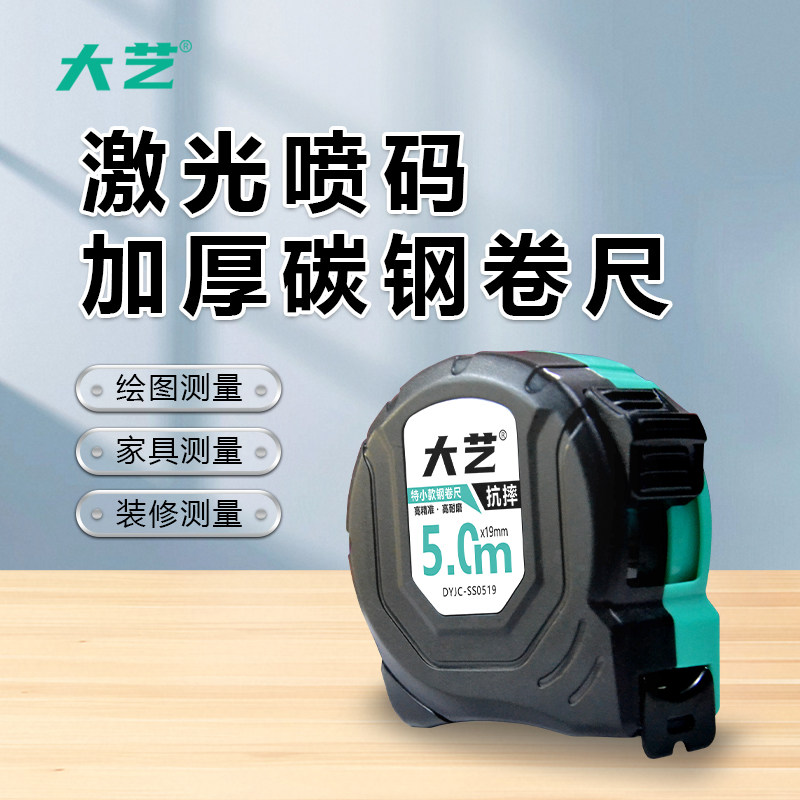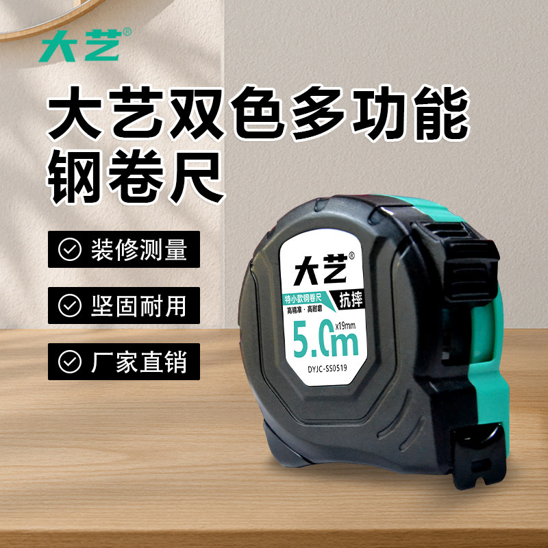 天猫大艺钢卷尺耐用防摔家用5米10米耐磨钢尺加厚盒尺高精度3米钢卷尺