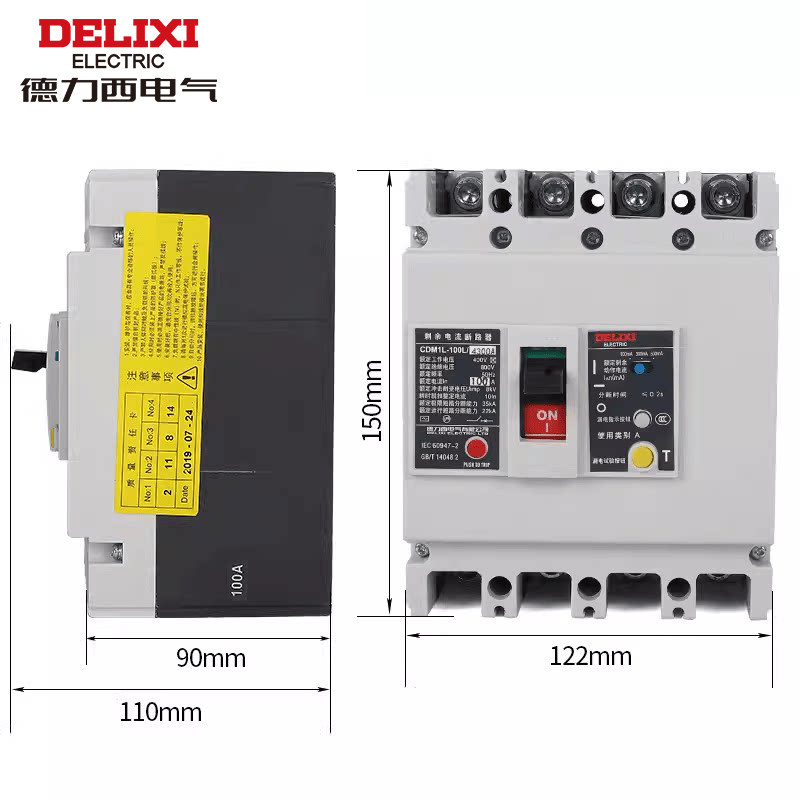 淘宝德力西CDM1L塑壳断路器3P63A空气开关带漏电保护器4P630A漏保160A