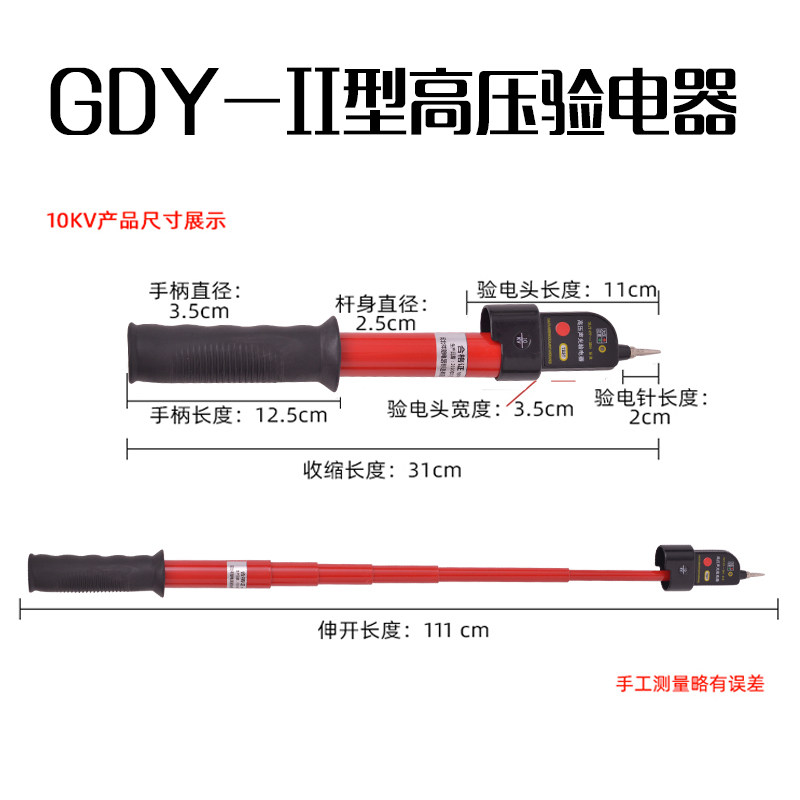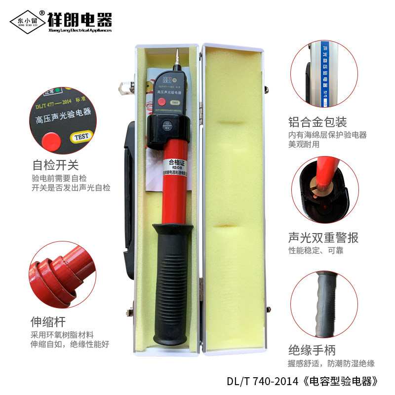 东小留牌GDY-Ⅱ型伸缩声光高压验电器是一款专为10kV及以下电压等级设计的便携式验电设备,兼具高压与低压验电功能。产品采用高强度绝缘材料制成,配备可伸缩式绝缘杆,操作安全便捷,适用于变电站、配电线路等电力作业场景。验电时通过声光双重报警(蜂鸣与LED闪烁)清晰指示带电状态,提升作业安全性。整体结构紧凑,收纳于专用铝盒中,防潮防震,便于携带与保存。该产品符合国家电力安全标准,绝缘性能优异,是电力运维人员可靠的验电工具,有效保障人身与设备安全。