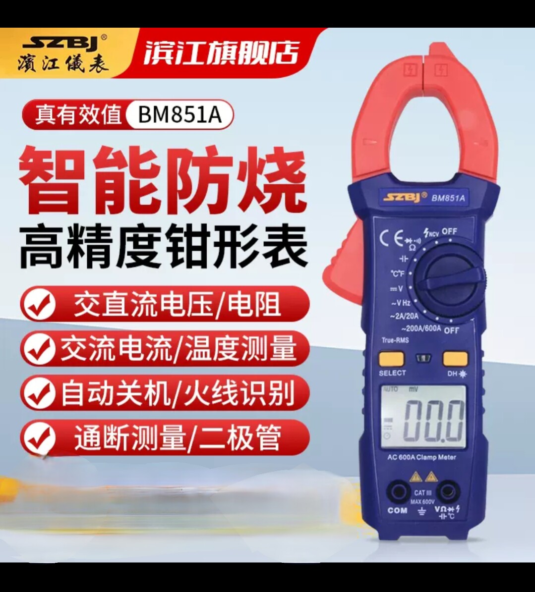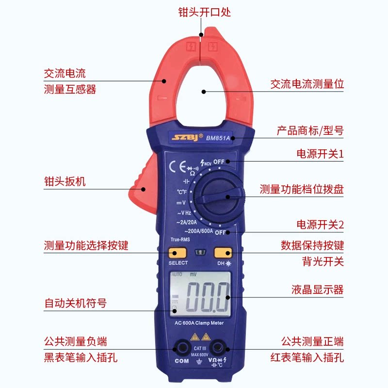 淘宝钳型电流万用表滨江BM851A数字高精度钳形表防烧钳形电流表维修电