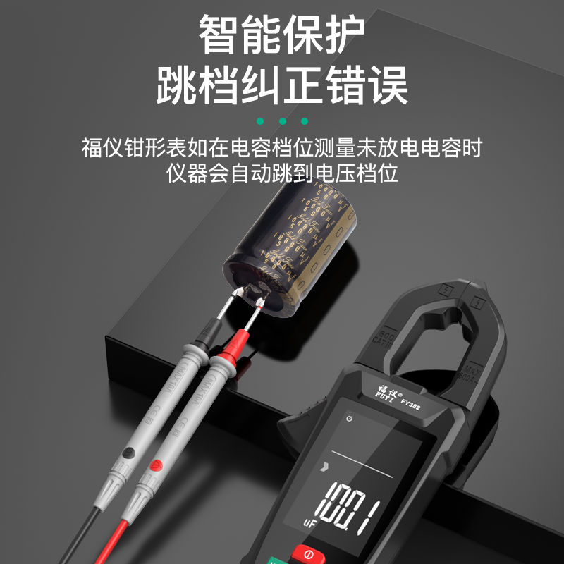 福仪自动钳形万用表是一款集高精度、智能化与多功能于一体的便携式电工测量工具。采用先进的自动量程技术,可快速精准测量交流/直流电流、电压、电阻、电容、频率及通断等参数,无需断开电路即可通过钳口非接触式测量电流,安全便捷。配备高清背光LCD显示屏,数据读取清晰直观,支持数据保持与最大/最小值记录功能。内置智能芯片,具备过载保护与低电量提示,适用于电力、通信、家电维修及工业检测等多种场景。结构紧凑、操作简便,是专业电工和工程技术人员的理想选择。