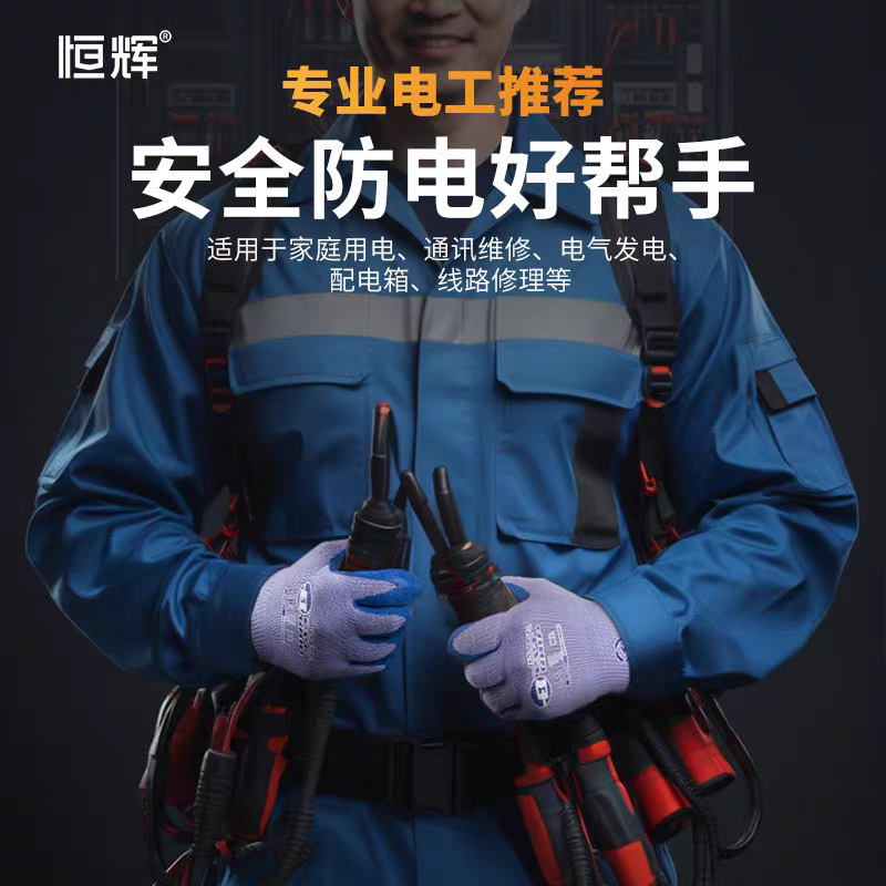 恒辉绝缘手套是一款专为400V及以下低压电工操作设计的安全防护装备,采用优质乳胶橡胶材质,具备优异的绝缘性能,有效防止触电事故,保障电路维修、配电室作业等场景下的操作安全。手套表面经特殊防滑处理,抓握稳固,即使在潮湿或油污环境中也能保持良好操控性。同时具备出色的耐磨性能,延长使用寿命,适合频繁使用。符合国家标准,通过相关安全认证,是电工日常作业的理想选择。轻便贴合手型,佩戴舒适,兼顾安全性与实用性,广泛应用于电力、通信、设备维护等领域,为一线作业人员提供可靠的手部保护。
