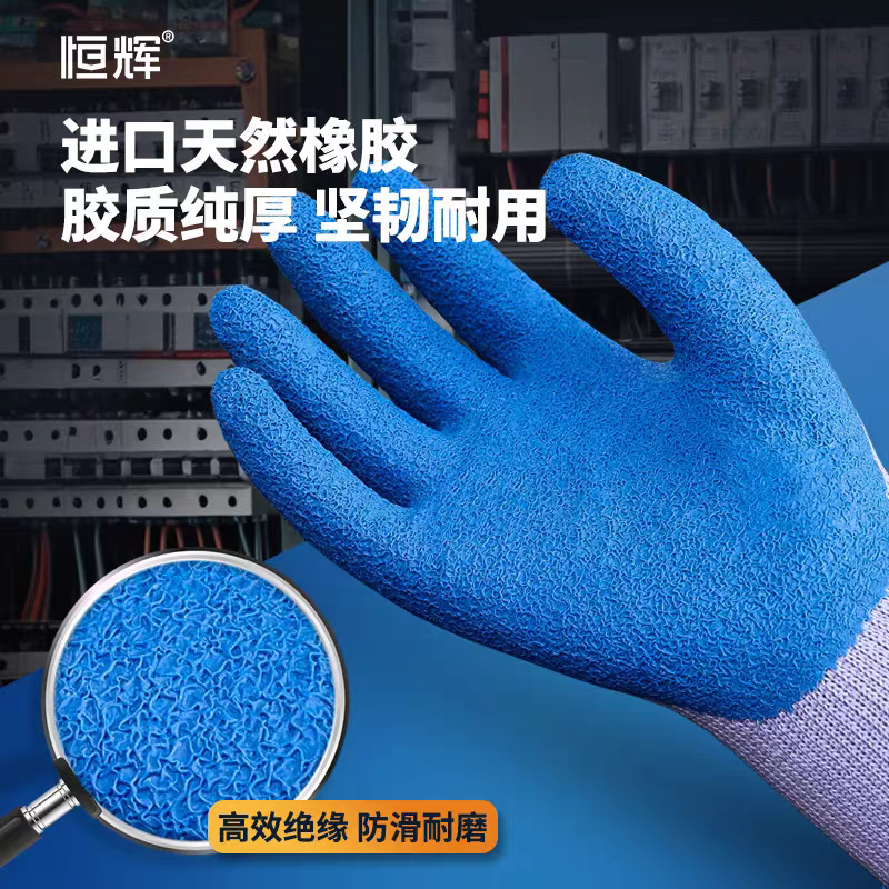 淘宝恒辉绝缘手套400V电工低压乳胶橡胶防触电防滑耐磨电路维修配电室