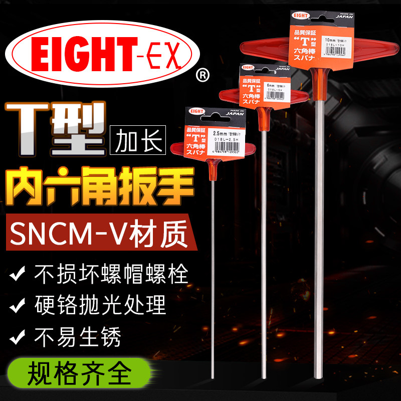 日本EIGHT平头T型内六角扳手进口018-2 2.5 3 4 5 6 8 10MM百利