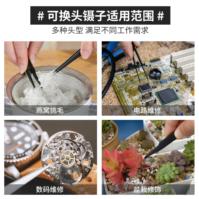 天猫可换头不锈钢镊子弯头尖头防静电小镊子燕窝挑毛电子维修工具套装