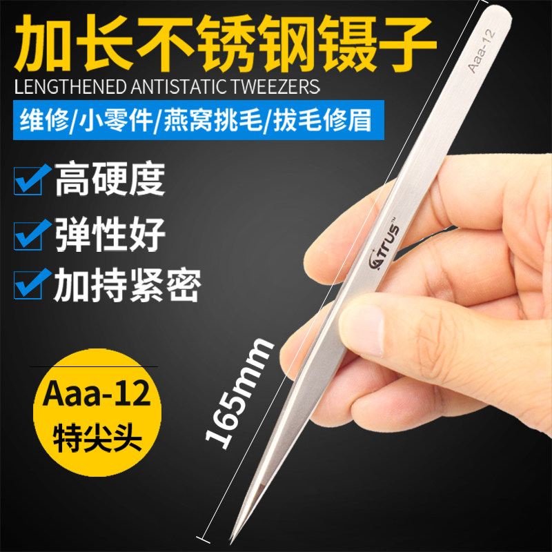淘宝不锈钢镊子防静电高精密工业弯尖头聂子电子维修工具燕窝拔毛夹子