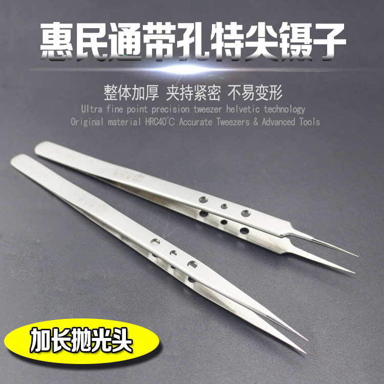 惠民通带孔不锈钢镊子是一款高弹性、高精密的专业工具,采用优质不锈钢材质打造,兼具耐腐蚀、抗氧化与长久耐用特性。其尖头设计精准细腻,适用于电子维修、精密仪器装配、珠宝加工、实验室操作等精细作业场景。带孔结构不仅减轻重量,还增强握持稳定性,提升操作舒适度。高弹性材质确保反复使用不易变形,夹持力稳定可靠。无论是拆卸微小元件、夹取精密零件,还是日常精细操作,这款镊子都能提供出色的操控体验,是工程师、技术人员及手工爱好者的理想选择,兼具实用性与性价比。