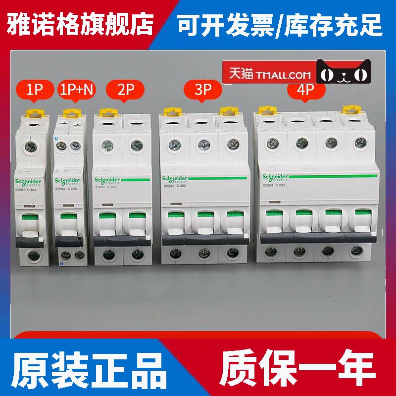 天猫施耐德空气开 关IC65N断路器1A/63A1P2P3P4P不带漏电保护A9C型空
