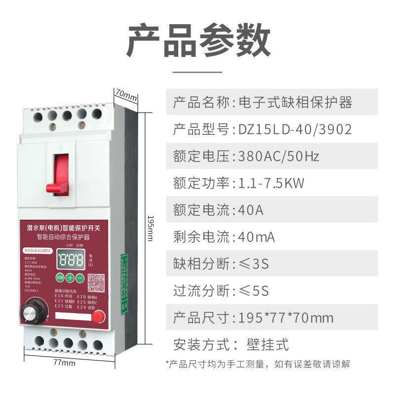 缺相保护器潜水泵保护器三相380V电开关电机断相漏电保护器