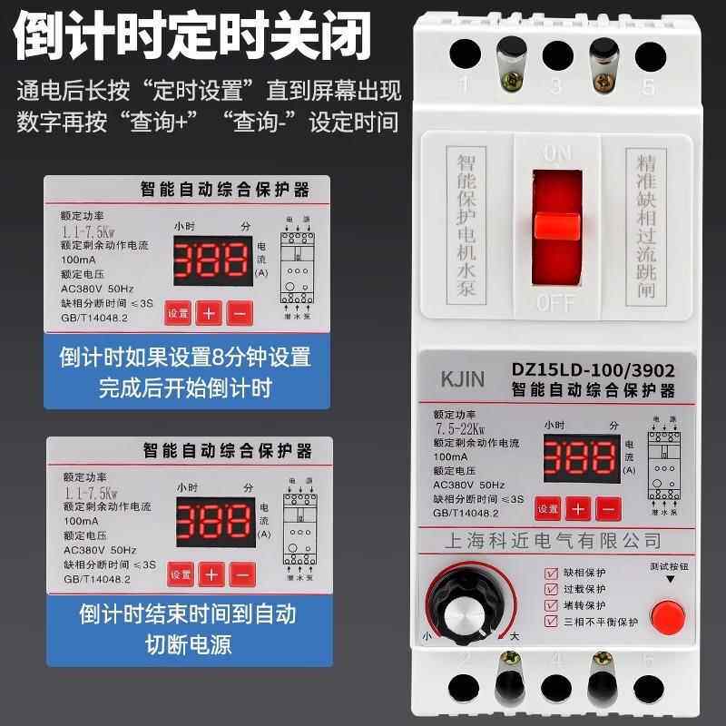 淘水泵电机缺相保护器电子断相漏电开关380v三相风机电流可调断路器