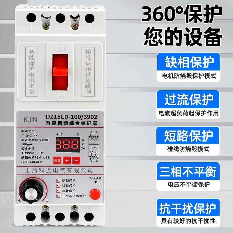水泵电机缺相保护器电子断相漏电开关380v三相风机电流可调断路器