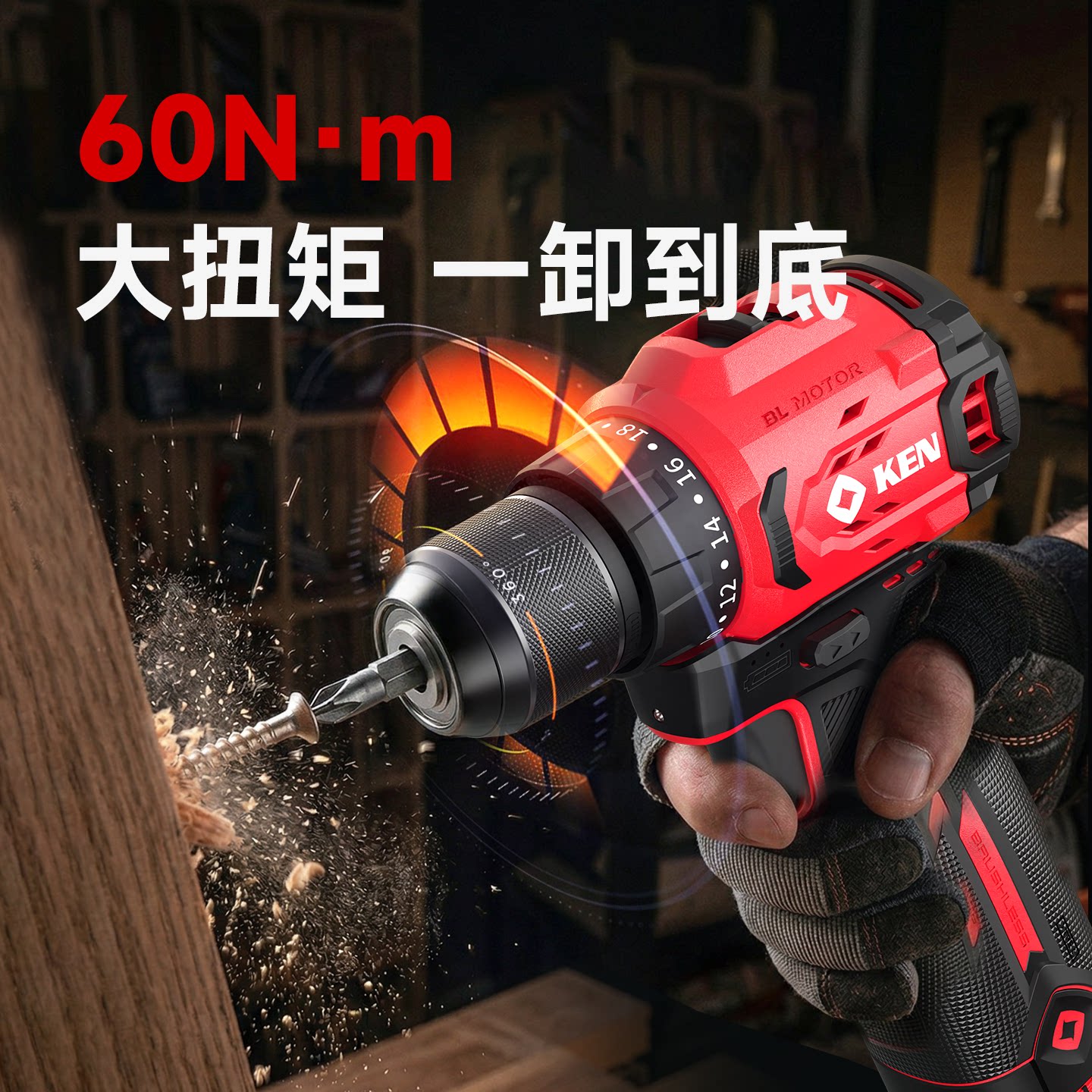 天猫KEN锐奇手电钻家用小钢炮锂电钻冲击无刷手枪钻转电动螺丝刀7316X