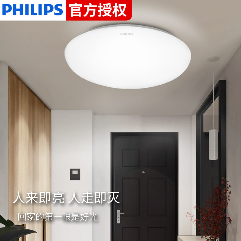 天猫飞利浦led楼梯楼道过道走廊阳台家用光控智能微波人体感应吸顶灯