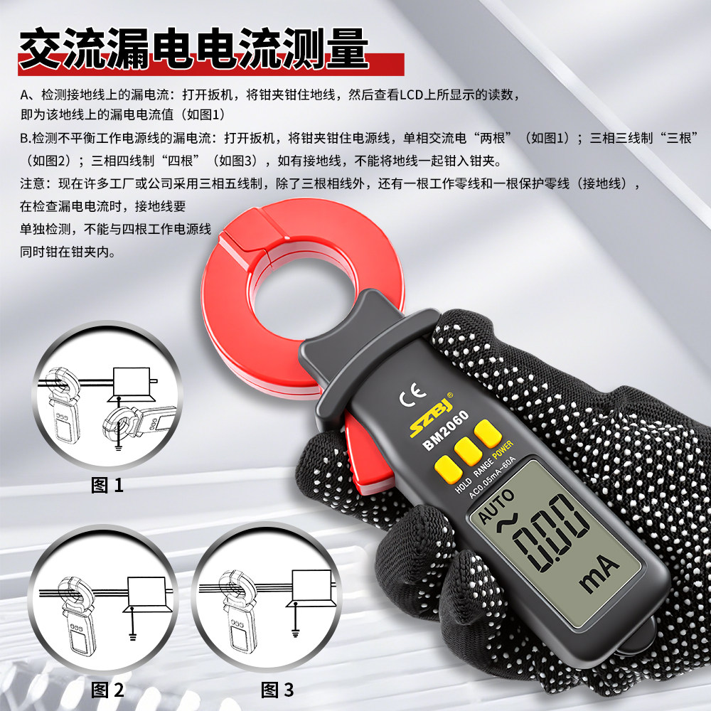 淘宝正品 滨江BM2060 数字 漏电流 微电流钳形表 20mA~60A 漏电检测