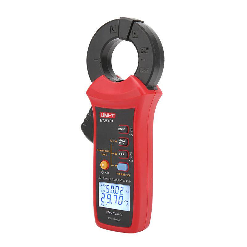 优利德UT251C+是一款高精度数字交流漏电钳形表,专为工业环境设计,具备出色的漏电检测与电流测量能力。该仪表采用非接触式钳形测量技术,可安全便捷地测量交流电流,最大量程达1000A,同时具备高灵敏度漏电检测功能,最小可检测1mA微小漏电流,适用于电力系统、电气设备维护及故障诊断。UT251C+配备真有效值(True RMS)测量,确保在复杂波形下仍保持高精度。大屏幕背光显示,数据读取清晰,支持数据保持与最大/最小值记录。结构坚固,防护等级高,操作安全,是电力运维、工厂检修等领域理想的专业检测工具,兼顾精准性、安全性与实用性。