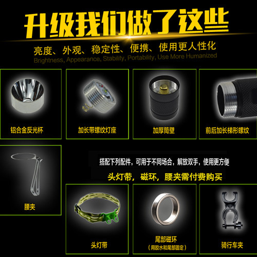 百能斯图手电筒5号干电池强光户外双光源磁吸巡逻探照远射手电灯