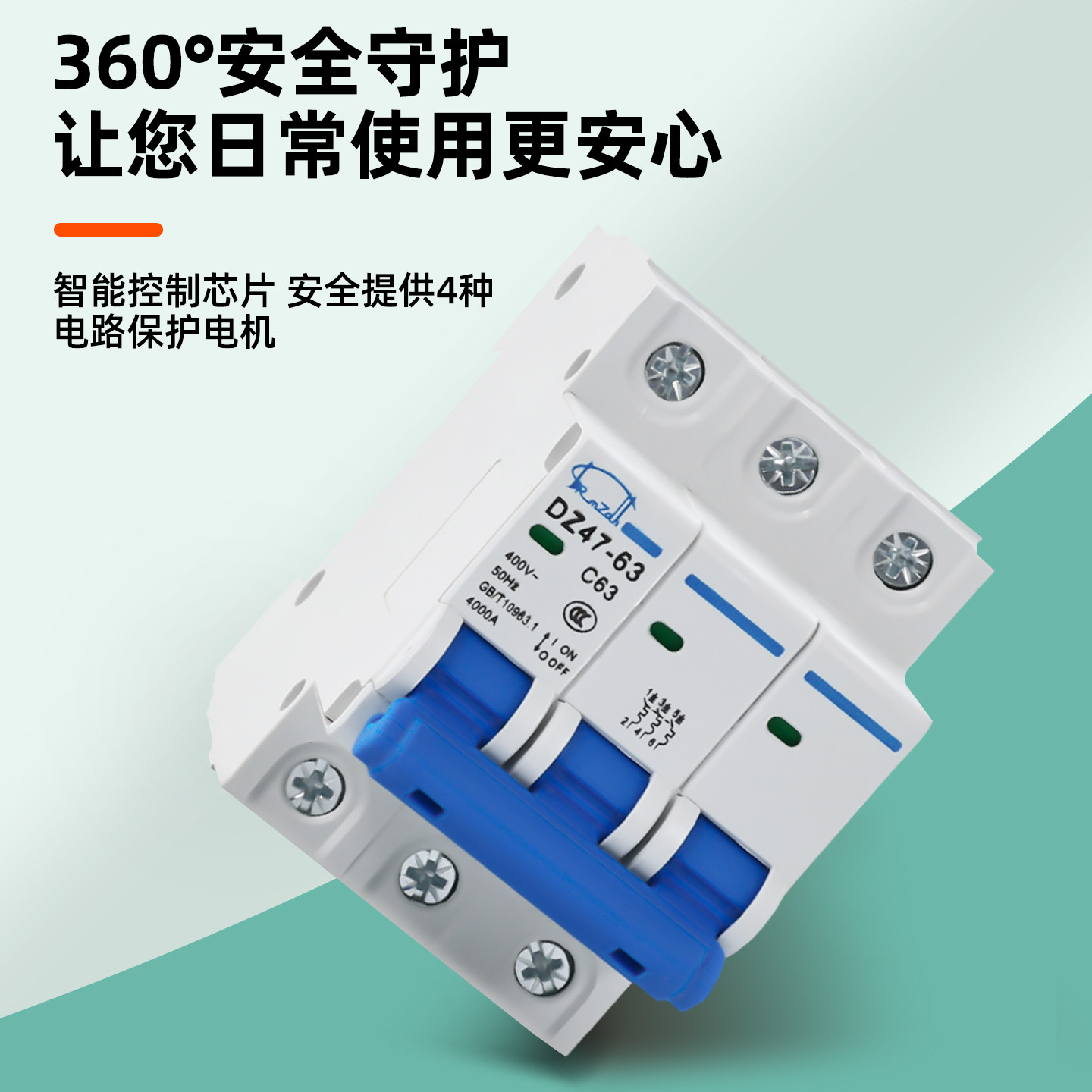 DZ47系列家用小型断路器空气开关是一种广泛应用于家庭及小型商业场所的电路保护装置,适用于空调、照明、插座等用电回路。产品包含1P、2P、3P等多种极数选择,可匹配单相或三相供电系统,额定电流涵盖16A、32A等常用规格,满足不同负载需求。具备过载与短路保护功能,部分型号集成漏电保护功能(漏电保护器),能有效防止触电和电气火灾,提升用电安全。结构紧凑、安装便捷,符合国家标准,是家庭配电箱中的理想选择,尤其适合空调等大功率电器独立回路控制,保障用电稳定与人身安全。