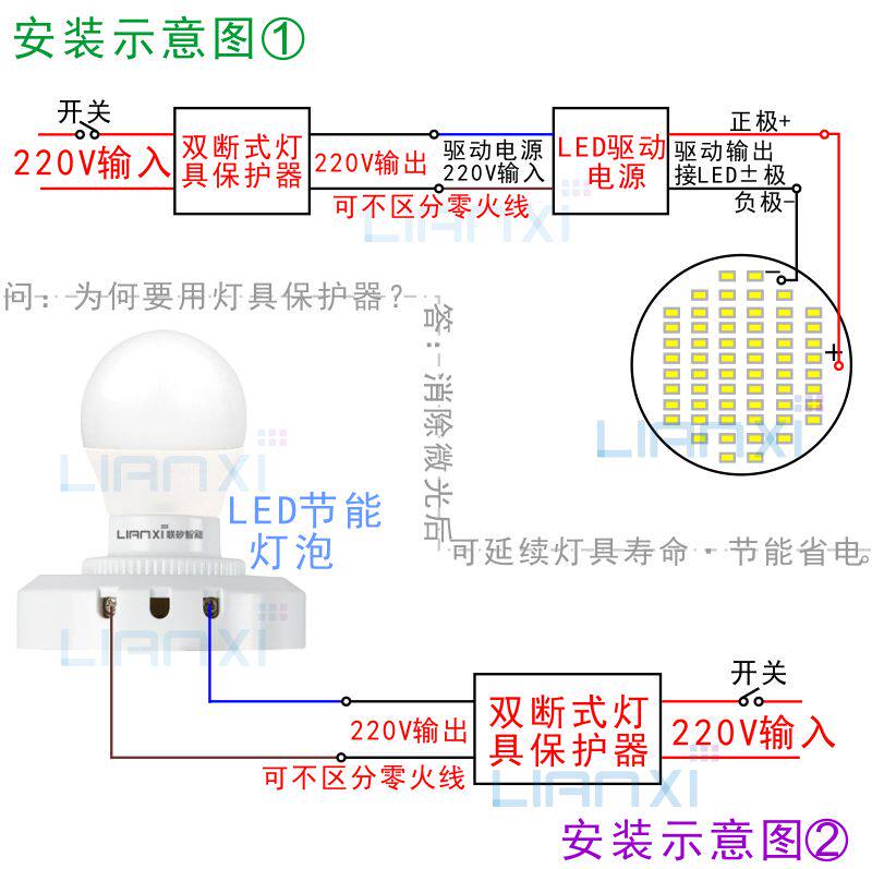 淘宝联矽智能双断式led灯防微光保护器LED灯具保护器防漏电防闪烁微亮
