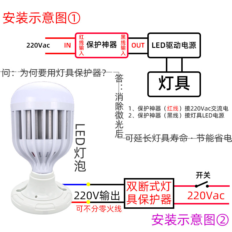 淘LED灯具保护器防微亮镇流器驱动贴片防雷防漏电消除关灯微光闪烁
