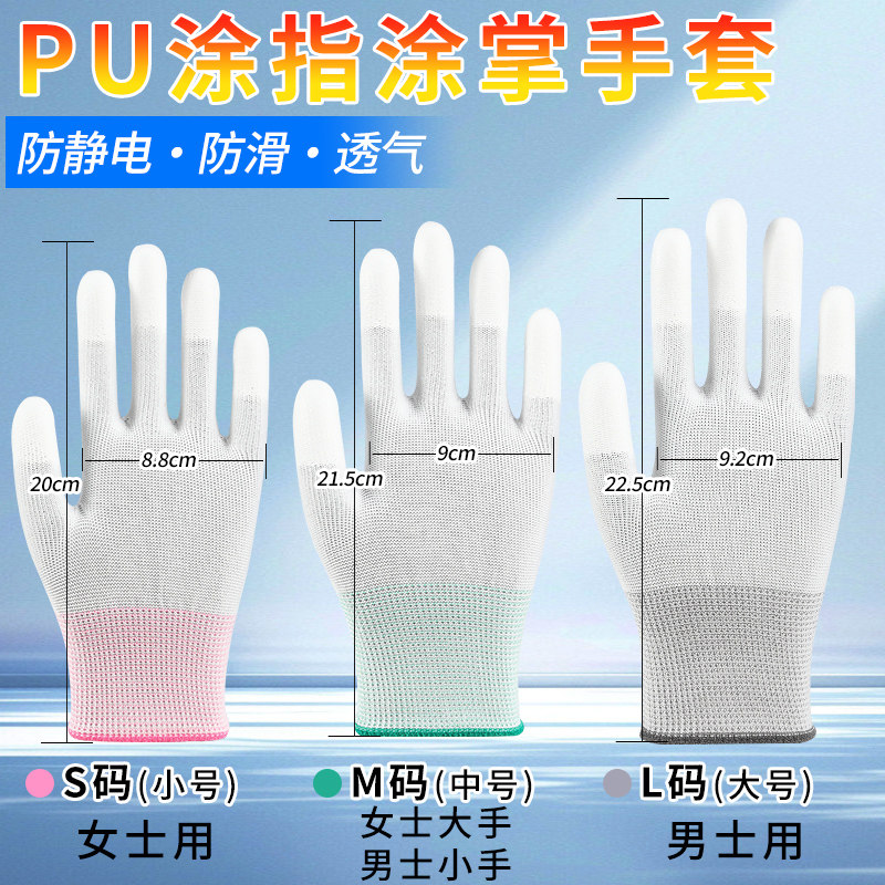 淘宝36双薄款白色尼龙PU涂指手套涂胶带胶浸胶涂掌电子防静电劳保手套