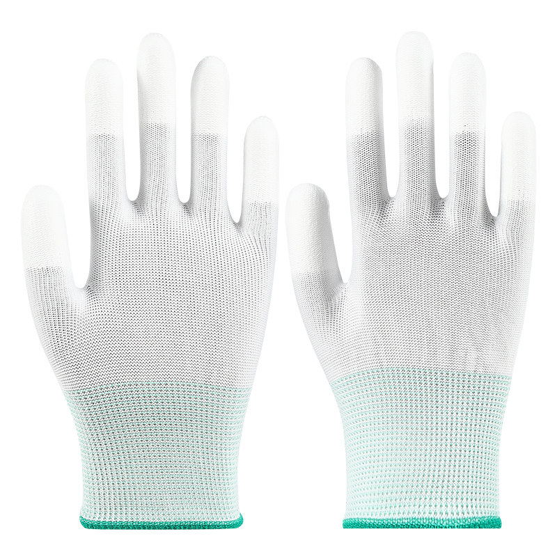 36双薄款白色尼龙PU涂指手套是一款专为电子、精密制造及防静电环境设计的劳保手套。采用高品质尼龙纱线编织而成,轻薄透气,佩戴舒适灵活。指尖及手掌部位采用PU浸胶工艺,增强抓握力与耐磨性,同时有效防滑。表面经防静电处理,适用于对静电敏感的工作场景,如电子元件装配、半导体生产等。白色设计便于及时发现污渍,确保操作洁净。每盒36双装,经济实用,适合企业批量采购。该手套兼具防护性、灵活性与耐用性,是电子行业及精密作业的理想选择。
