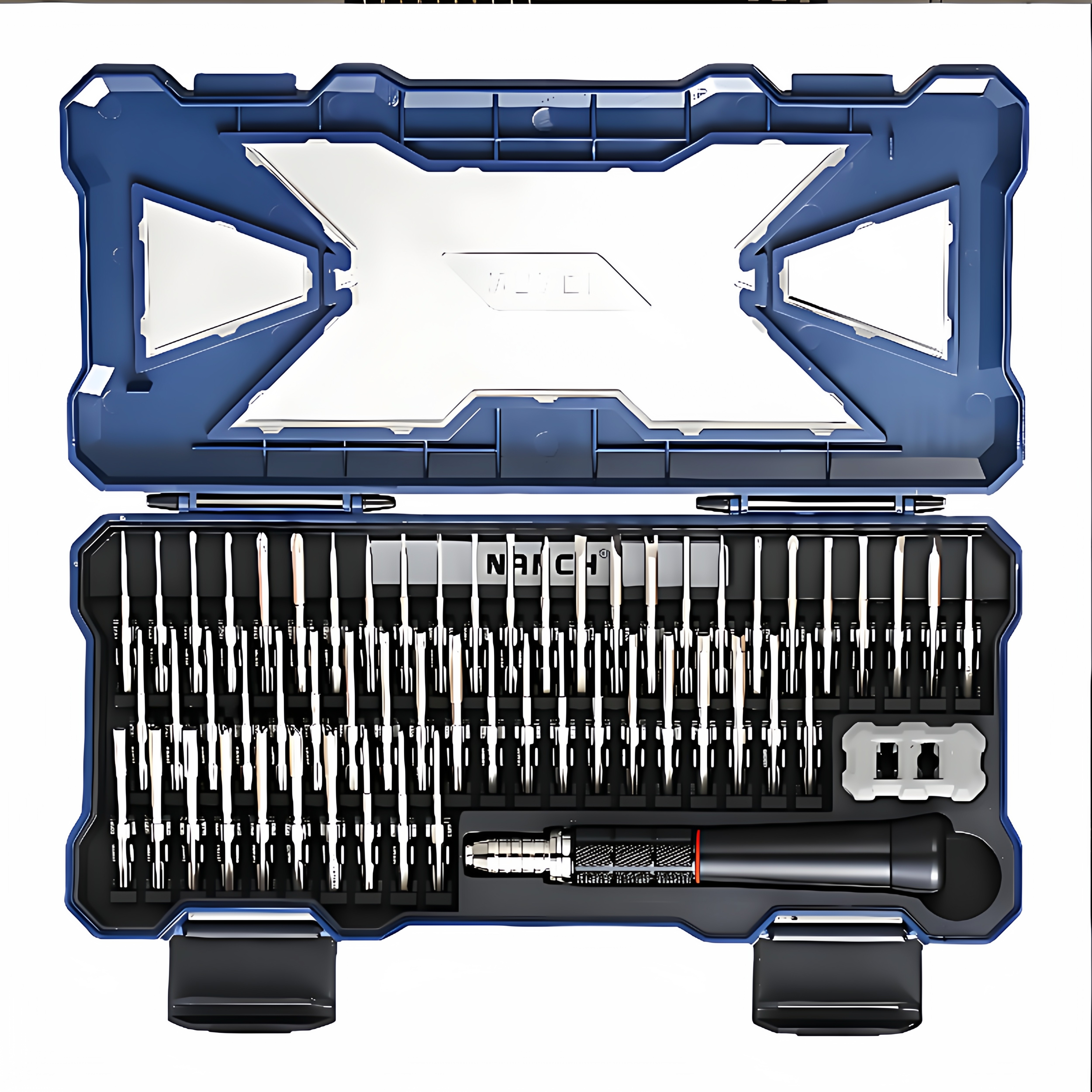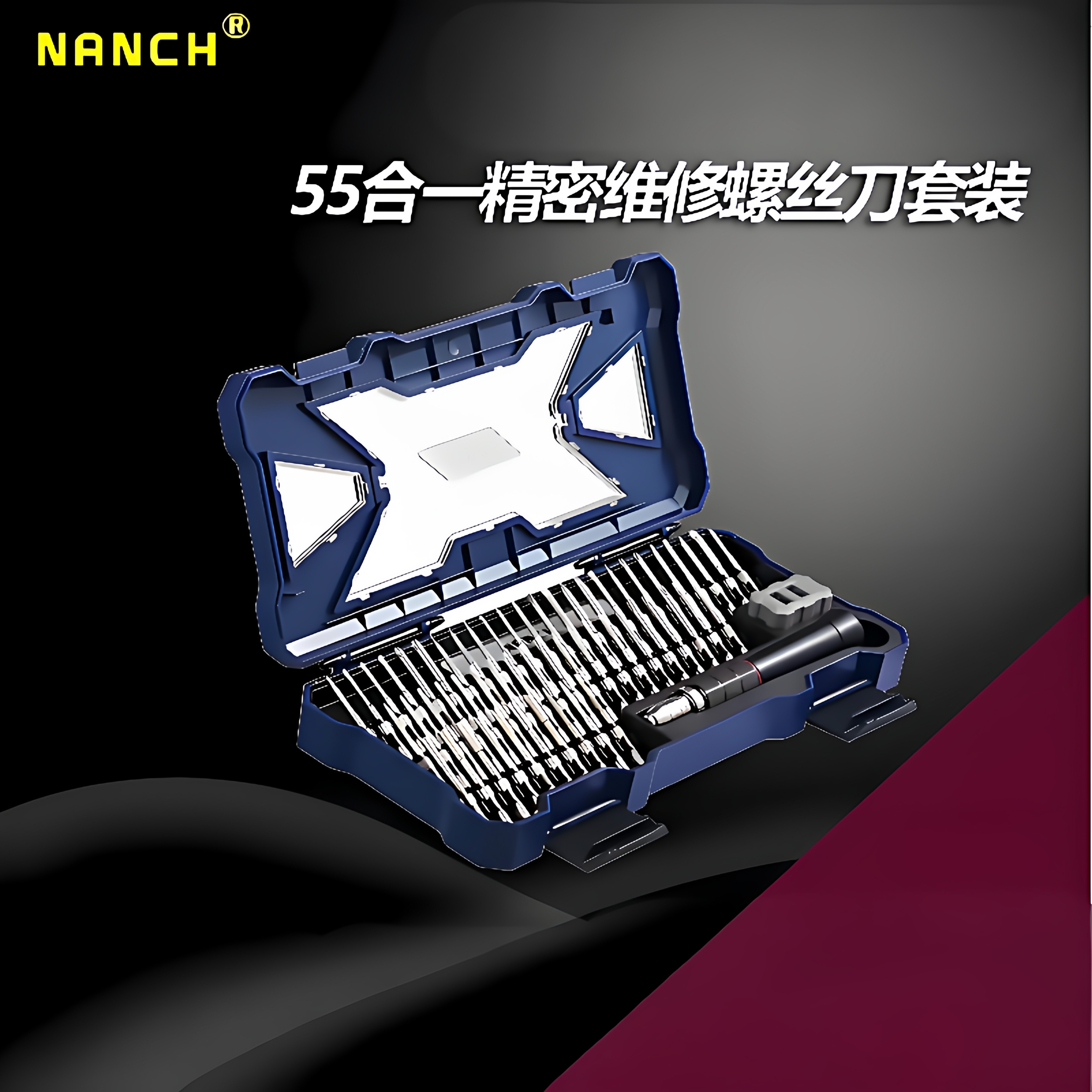 南旗S2工具钢55合1多功能组合螺丝刀套装专为手机维修工程师及精密设备拆装设计,采用高品质S2合金钢制造,硬度高、抗磨损、不易滑牙,确保长久耐用。套装包含55种不同规格批头,涵盖十字、一字、六角、星形(Torx)、Y型、三角等常用型号,适配主流手机、平板、笔记本等电子设备。磁性批头设计便于吸附螺丝,提升操作效率。人体工学防滑手柄握感舒适,支持快速更换批头,结构紧凑,便于携带与收纳。无论是日常维修还是专业拆机,该套装都能提供精准、高效的解决方案,是电子维修人员的理想工具选择。